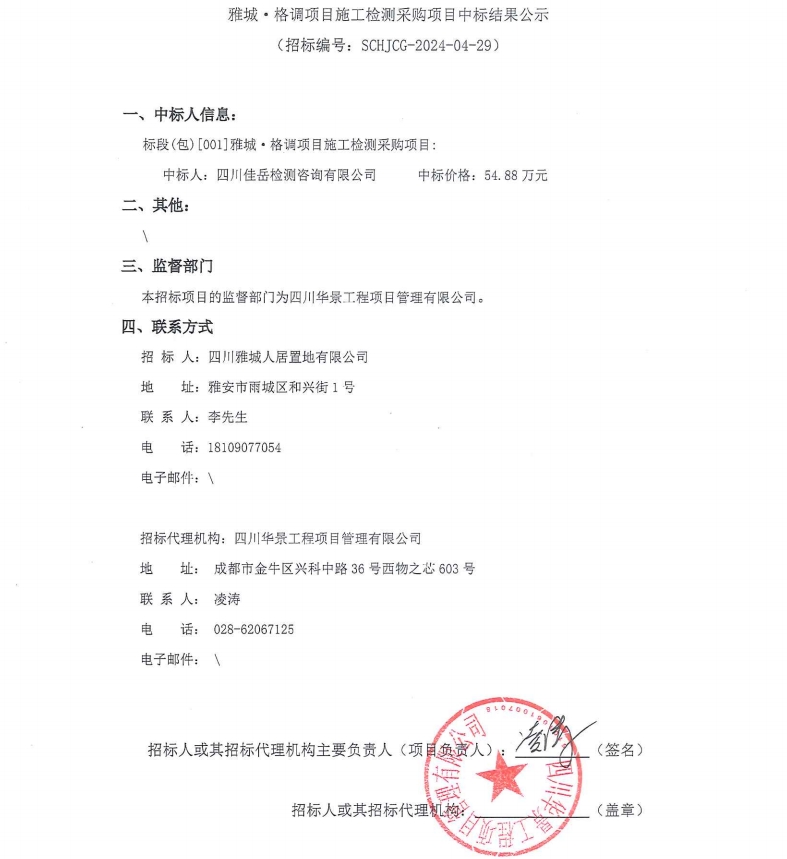 雅城·格調(diào)項目施工檢測采購項目中標結(jié)果公示